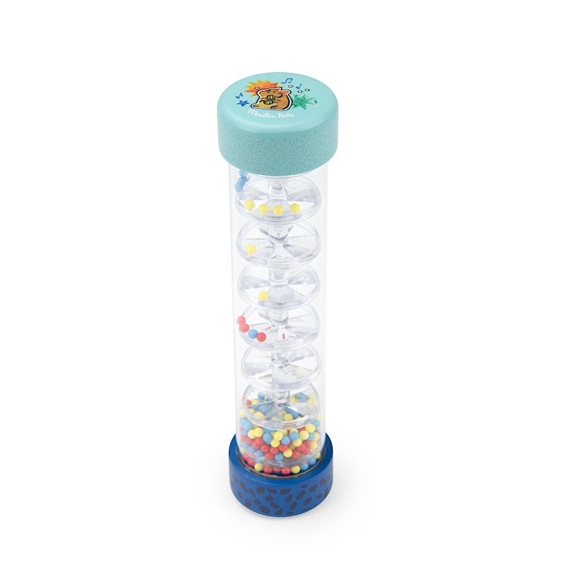 Bâton de pluie issu de l'univers de Puce & Pilou. Premier éveil musical pour bébé, il jouera à le retourner pour faire dévaler ses billes et profiter du doux son de la pluie.