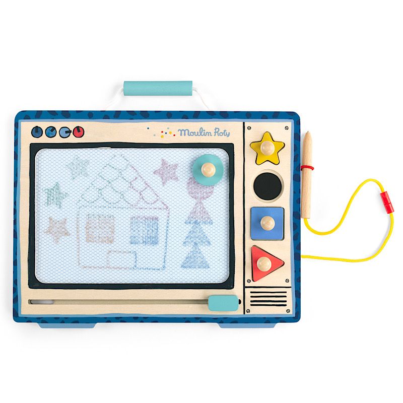 Le télé ardoise magique Puce & Pilou laisse place à la créativité. Muni d'une réglette et de tampons, il offre une multitude de possibilités pour dessiner à l'infini. Tout pour devenir un véritable artiste !