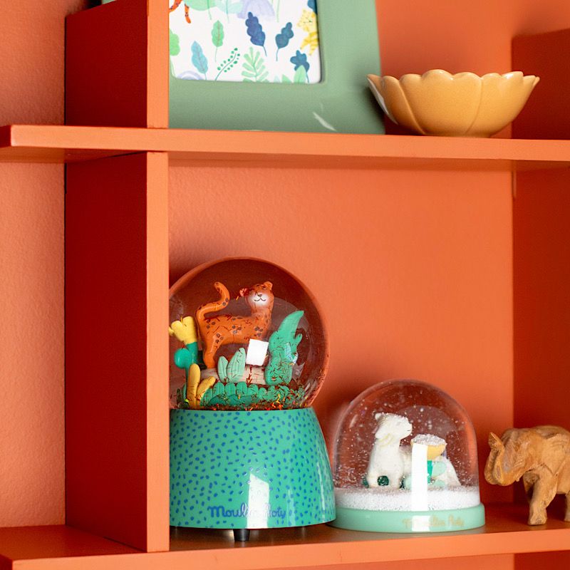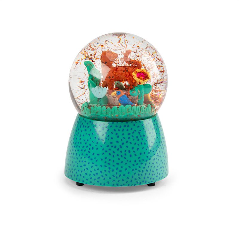 Plongez dans l’univers enchanté de la forêt avec la boule à neige musicale La forêt Mawa de Moulin Roty.