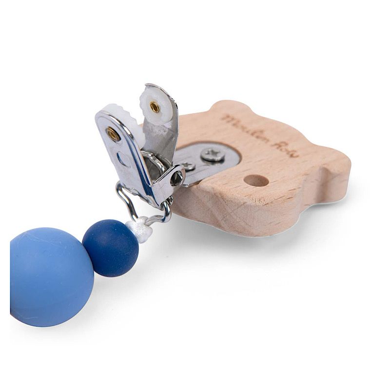 Attache-tétine hamster en bois et silicone pour ne plus perdre la sucette de bébé. Les perles de silicone sont sans danger, il pourra jouer avec et les mâchouiller. A clipser sur les vêtements de bébé.