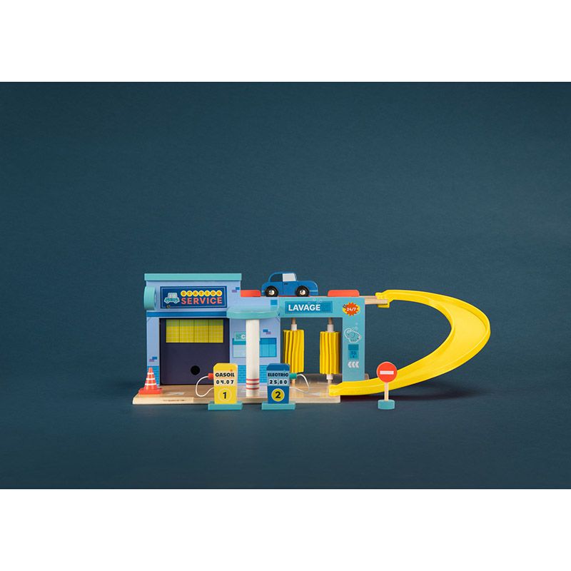 Faire le plein, laver les voitures, réparer les pannes, les petits s'inventeront d'incroyables histoires avec la station-service en bois. Cette station au look rétro comprend 1 voiture, 1 rampe, 2 pompes, 1 box...pour des heures de jeu en perspective !