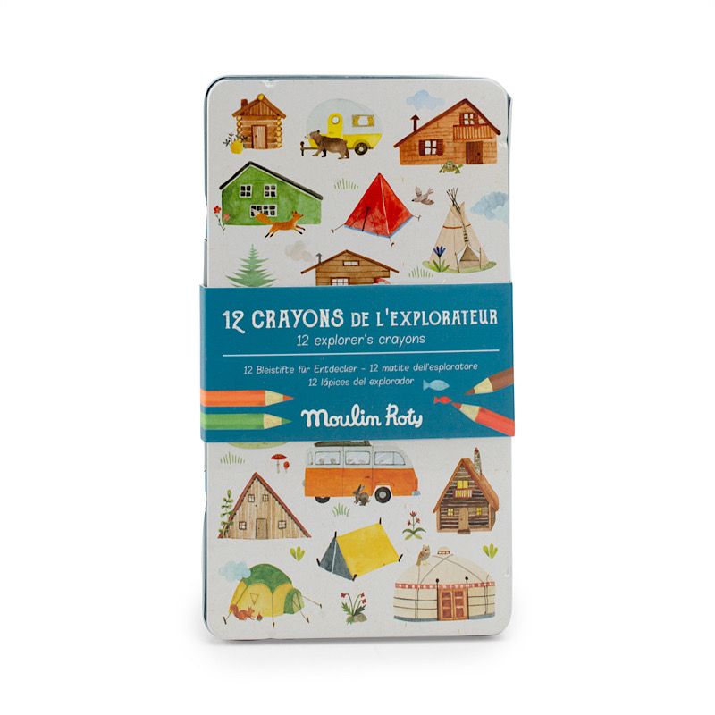 Découvrez les 12 crayons de couleurs Le Jardin du Moulin de Moulin Roty, idéals pour accompagner les premières créations artistiques des enfants dès 3 ans.
