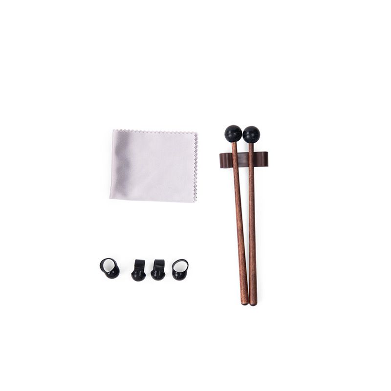 Instrument pour familiariser les enfants aux percussions. 11 notes indiquées par une couleur et un chiffre pour jouer avec les mains, le bout des doigts ou à l'aide de baguettes. Inclus sac de transport, livret de mélodies, 2 baguettes et 4 pics à doigts.